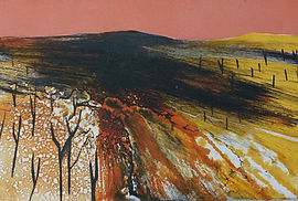 Anita Reynolds explores the deep connection between place and the human condition. Her works focus on scars and features caused by previous habitation and industry, with nature then subsequently healing the landscape. When producing her prints Anita divides her time between working on site, a combination of walking, sketching and printmaking and developing ideas back in the studio. She finds when working outside there is an excitement that enables her to make vigorous and spontaneous marks. These are a result of both an emotional, as well as visual, response to her location. Rapidly changing light and weather conditions often require Anita to work quickly, forcing her to focus on only the essential details. Once back in the studio she uses the studies and her memory of place to develop multi-layered monotypes, collagraphs and hybrid prints.