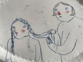 Working in porcelain and stoneware, I combine drawing and printmaking to build narrative on the surface of decorative hand-built ceramics. My drawings are inspired by mundane scenes and moments of connection, interspersed with imagery from half-remembered Scottish superstitions. Fingerprints, brush strokes and making marks are intentionally left exposed to accentuate the relationship between vessel and subject. I studied Textile and Surface Design at Gray’s School of Art in 2010, where I first began working with clay. After graduating I went on to study for a Masters in Illustration at Edinburgh College of Art in 2014 and stayed on as Artist in Residence. I’m now settled in Sheffield after moving down for the Ceramic Starter Studio at Yorkshire Artspace in 2017.
