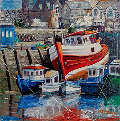 Kevin was always encouraged and inspired to art by his father, becoming a self-taught natural artist, A love of colour and movement always inspiring him. "I love water as it changes in colour & shape, adding interest to the main subject sometimes. Whatever the subject and style, whereever the inspiration comes from, either places visited, imagination. a moment memory, the sources are endless, that direct me to paint." Works in oils tend to be more detailed and traditional in style whilst works in acrylics tend to be more vibrant and slightly towards abstract. "My styles as I evolve mingle and hopefully bring both together. In short 'Realistically Abstract'. I hope to always bring colour, depth, feeling of the subject chosen and interest." “Boring eh? Look enjoy. Smile.”