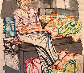 🖌️ Mixed Media | Chinese Pen and Ink on handmade Shenzhen Chinese Golden Paper. A portrait of my Mother made from a zoom screen shot I took when I was based in China and away from he