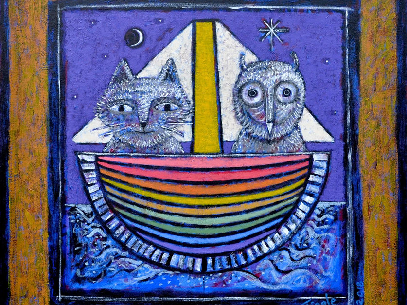 A celebration of Butterflies, Blake and Bong Trees through the eyes of lifelong ‘nonsense’ fan and printmaker Mike Tingle will be coming to our Courtyard Gallery for 3 weeks as we welcome our second 2021 bursary winner to this intimate space. Mike discovered the Nonsense Icon while sitting outside the Eliot Alms in St. Germans enjoying a pint of beer. ‘I was reading a newspaper article about the medieval stave church paintings from Norway, with a photograph of a vaulted arched ceiling depicting an enthroned Christ with Apostles. I asked myself why, as a non-believer, do I like such things. The answer was to do with Myth, and the structure of the vaulted ceiling which made it look like a small object. I then (with the help of the beer) made an imaginative connection with a small wooden panel with cut out painted metal images I'd recently made for the Devon Guild of Craftsmen's summer show. It was of the Cheshire Cat with a dodo standing on top of the panel. I thought, I've made a Nonsense Icon without realising it. The word icon led to the idea of hinged doors attached to the panel front, and this in turn lead to the use of text in conjunction with revealed images. I had found my ideal form.’ Alongside the ‘nonsense’ will be printmaking inspired by William Blake, who has been a constant inspiration and influence on Mike and finally, on a more serious note, a series of work produced during lockdown to highlight the decline of the humble butterfly. These works printed onto canvas celebrate their wonderful structure yet draw attention to the ongoing threat to their numbers with several species already extinct. Mike is a member of the Devon Guild of Craftsmen. His main method of printmaking is fine line etching but he has also experimented with embossing heavy papers through an etching press. These embossing’s made of white paper and shadows depict simplified figures in frieze-like form. Mike has exhibited at the Royal Academy Summer Exhibition many times and we are delighted to be showing his new work at the gallery for this exhibition.